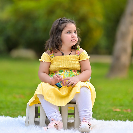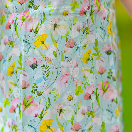 Bicycle Print Cotton Lawn Frock – Off-Shoulder Elastic Neckline, Short Puff Sleeves