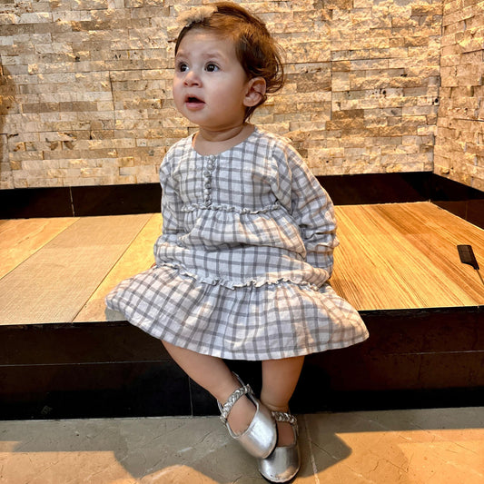 Elegant Plain Flared Frock – Button & Loop Neck, Blended Wool with Glitter