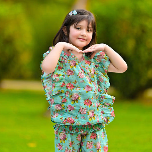 Bluebell Bloom Set Sky Blue Eid Dress | Pakistani Festive Kidswear