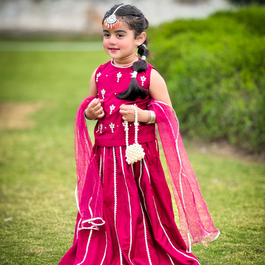 Dark Fuchsia Lehenga Choli - Gota Patti & Net Dupatta